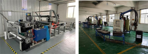 公司引進(jìn)5臺(tái)先進(jìn)注塑成型機(jī)、4條造粒生產(chǎn)線、裁斷機(jī)2臺(tái),貼合機(jī)2臺(tái),沖壓機(jī)2臺(tái)及各種輔助設(shè)備20余套